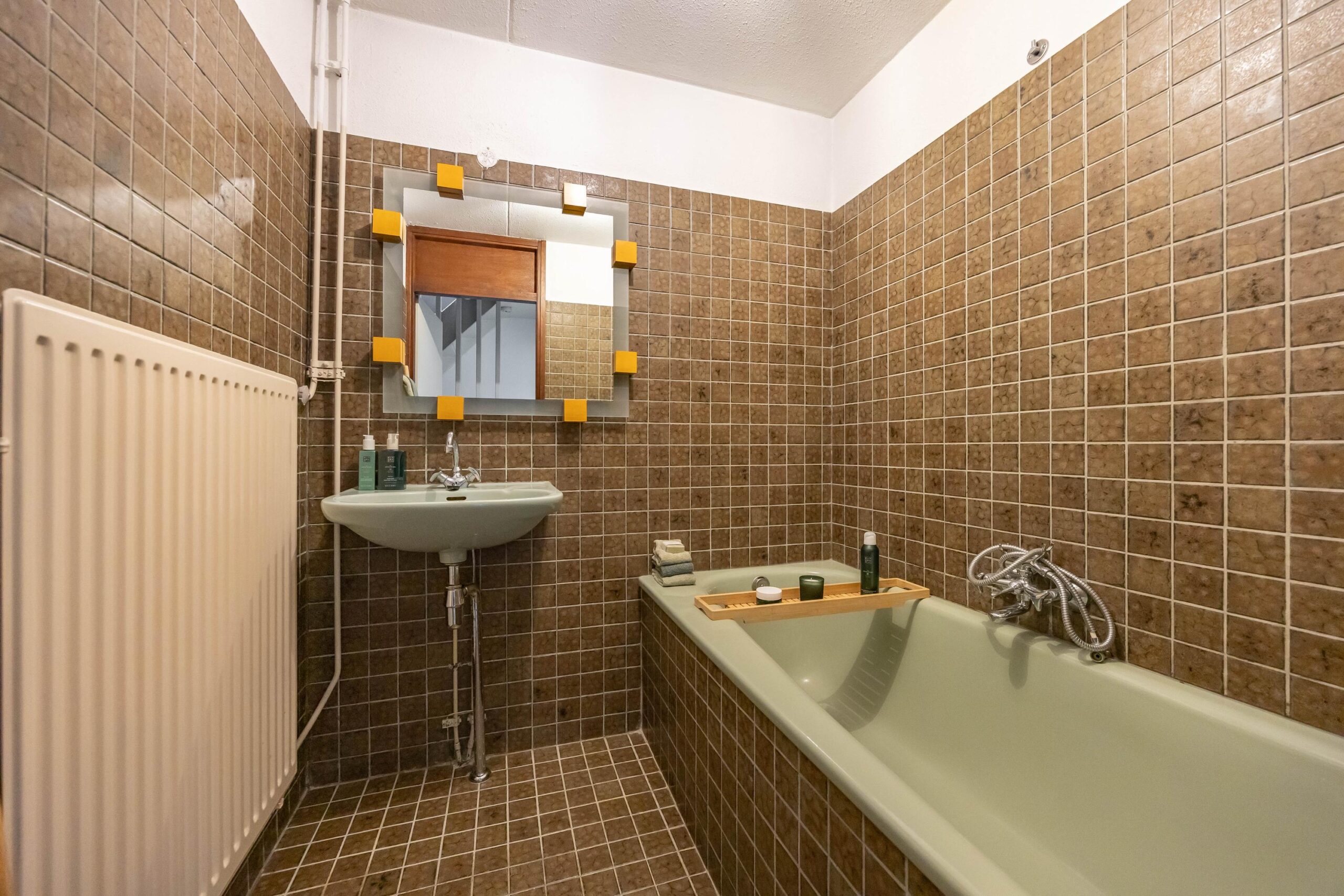 De overloop van de eerste verdieping geeft toegang tot drie ruime slaapkamers, waarvan de master bedroom aan de achterzijde van de woning ligt en toegang biedt tot het balkon met uitzicht op de tuin. Op deze verdieping zijn twee sanitaire ruimtes: één voorzien van een ligbad en wastafel, en de andere van een douche, toilet en wastafel.