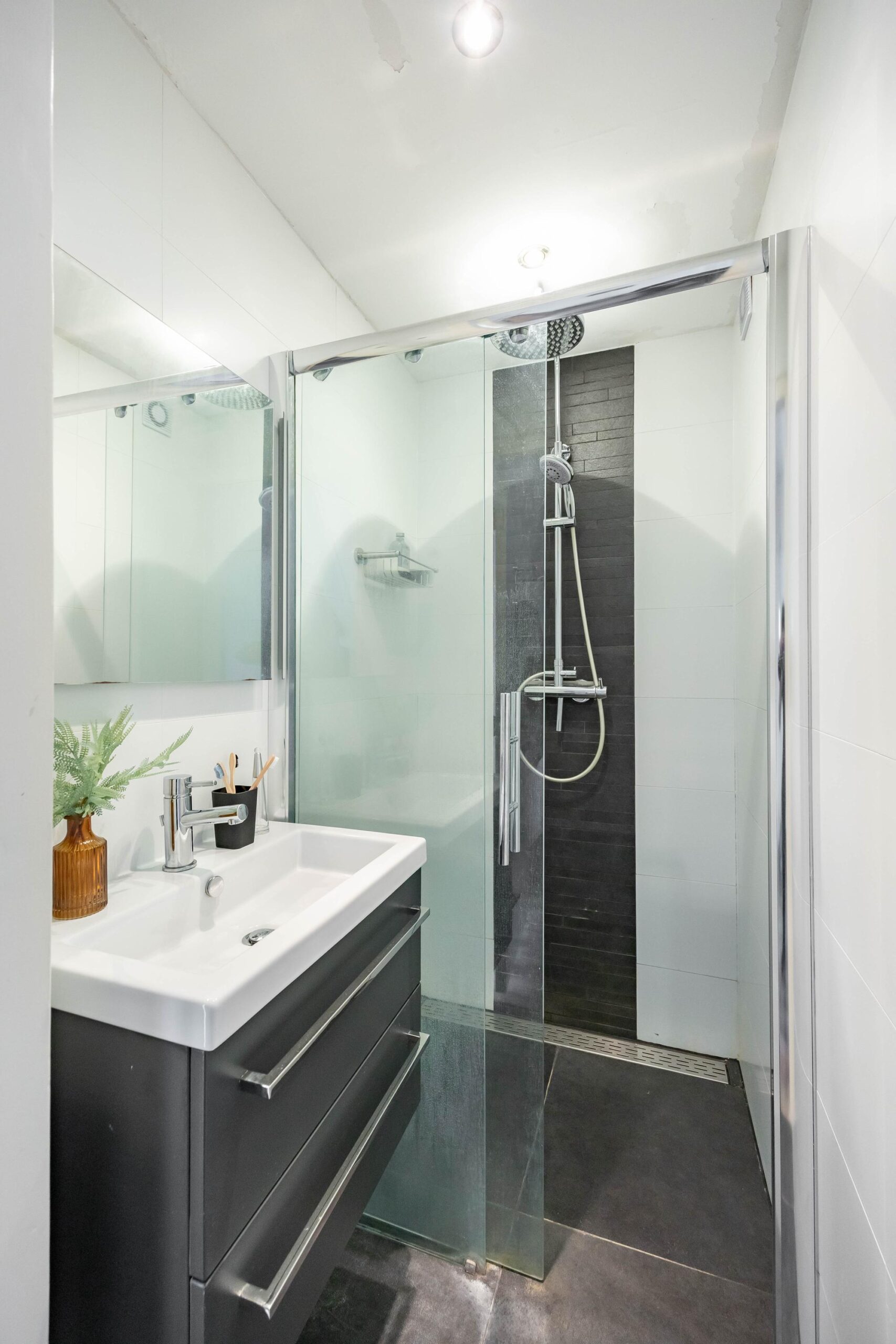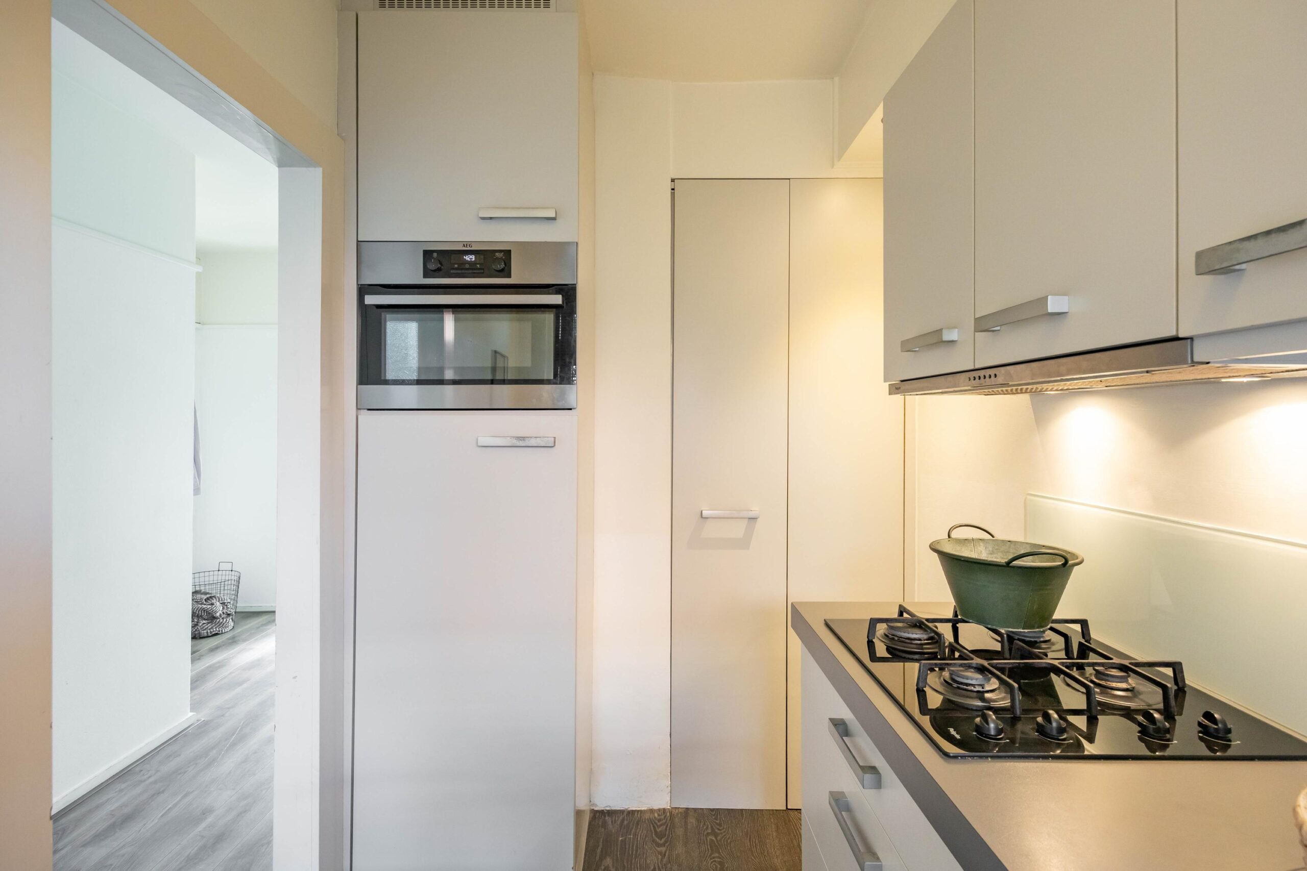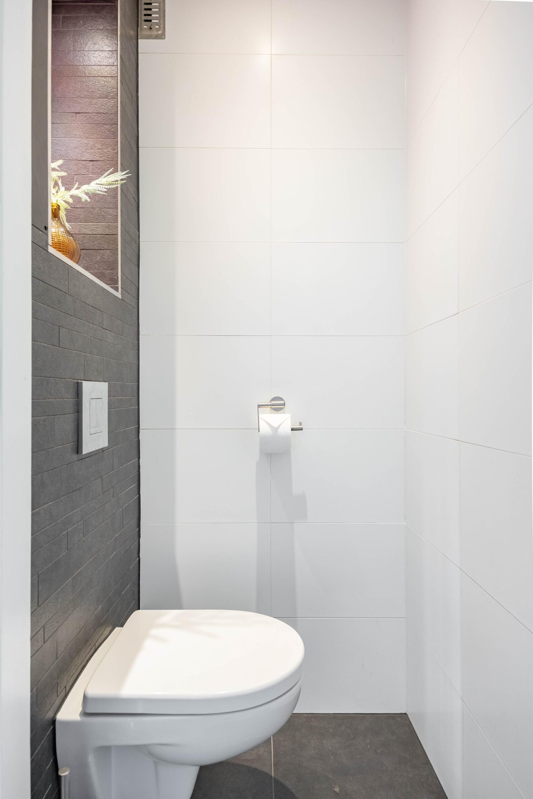 Op de eerste verdieping kom je binnen in de hal met meterkast en zwevend toilet met fonteintje. De woonkamer van 24 m² is licht en overzichtelijk. De moderne, dichte keuken is voorzien van combi-oven, vaatwasser, wasemkap, gaskookplaat en koelkast. De badkamer heeft een wastafelmeubel, inloopdouche en mechanische ventilatie. Verder zijn er drie slaapkamers van ca. 9, 10 en 12 m² en een balkon aan de voorzijde op het zuiden.