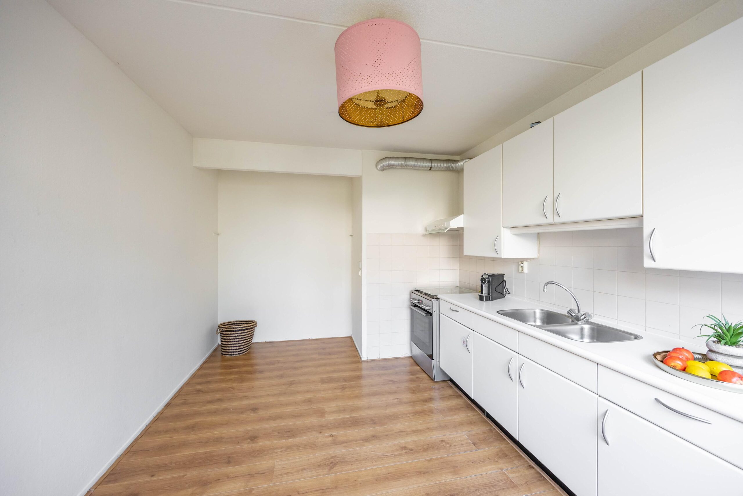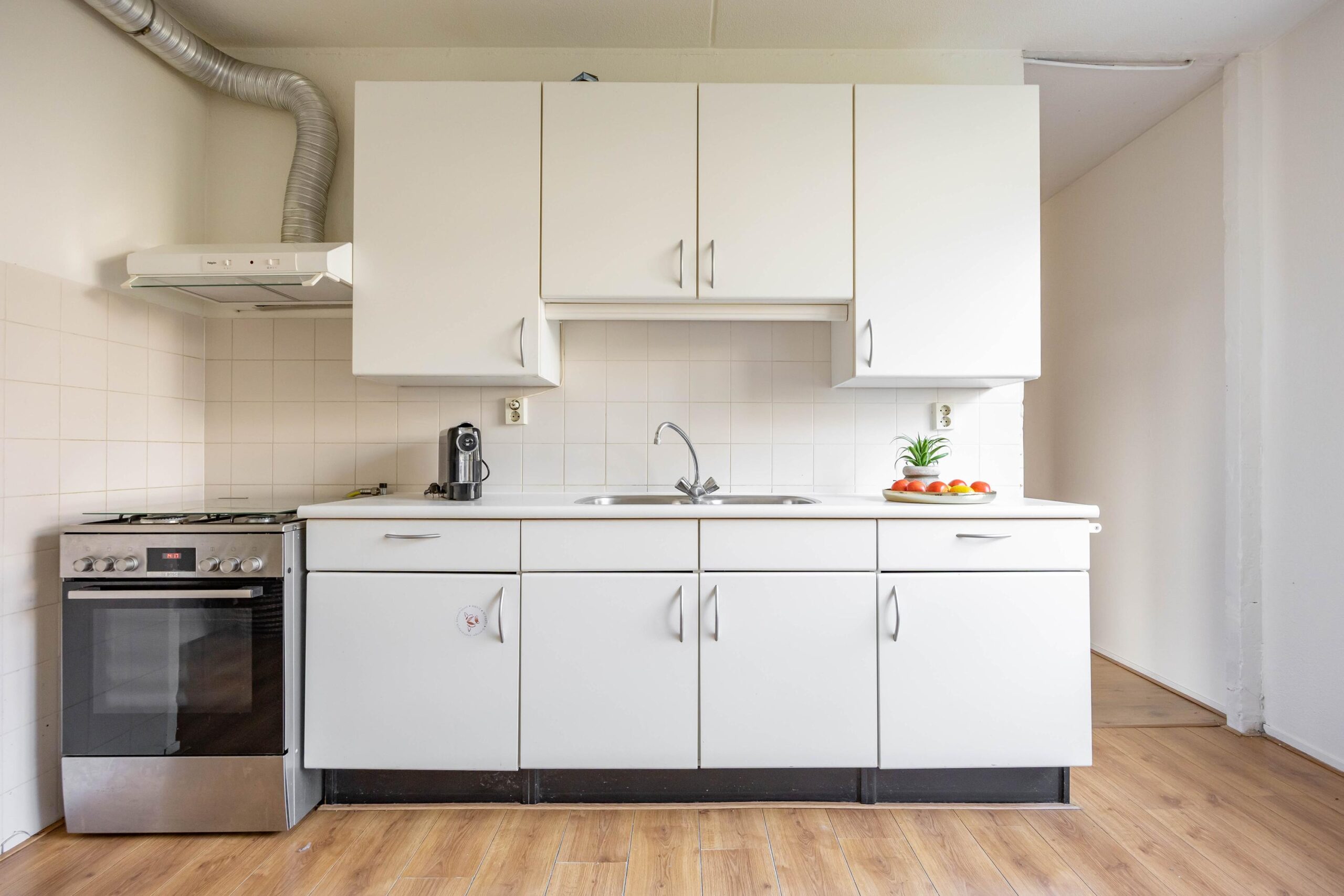 Bij binnenkomst word je verwelkomd in een ruime hal met meterkast, toiletruimte, trapkast en de trapopgang naar de eerste verdieping. Vanuit de hal kom je in de lichte en ruime woonkamer, die toegang biedt tot het balkon, ideaal om van buiten te genieten. De dichte keuken is netjes afgewerkt met witte kasten en biedt voldoende opbergruimte.
