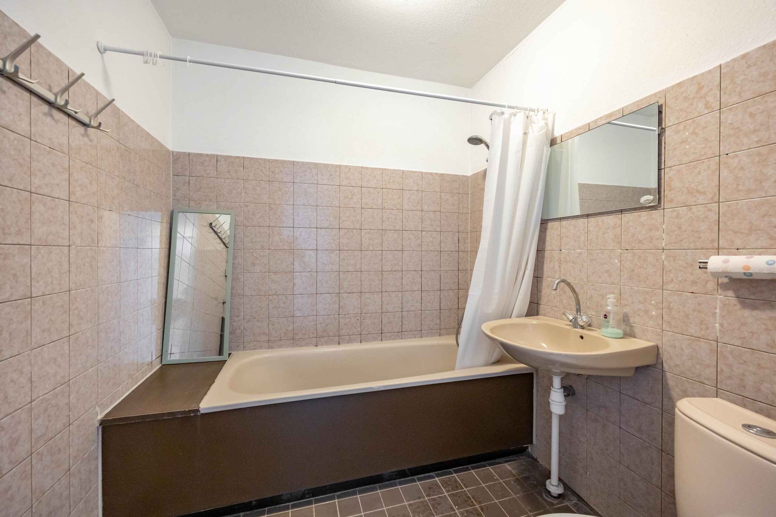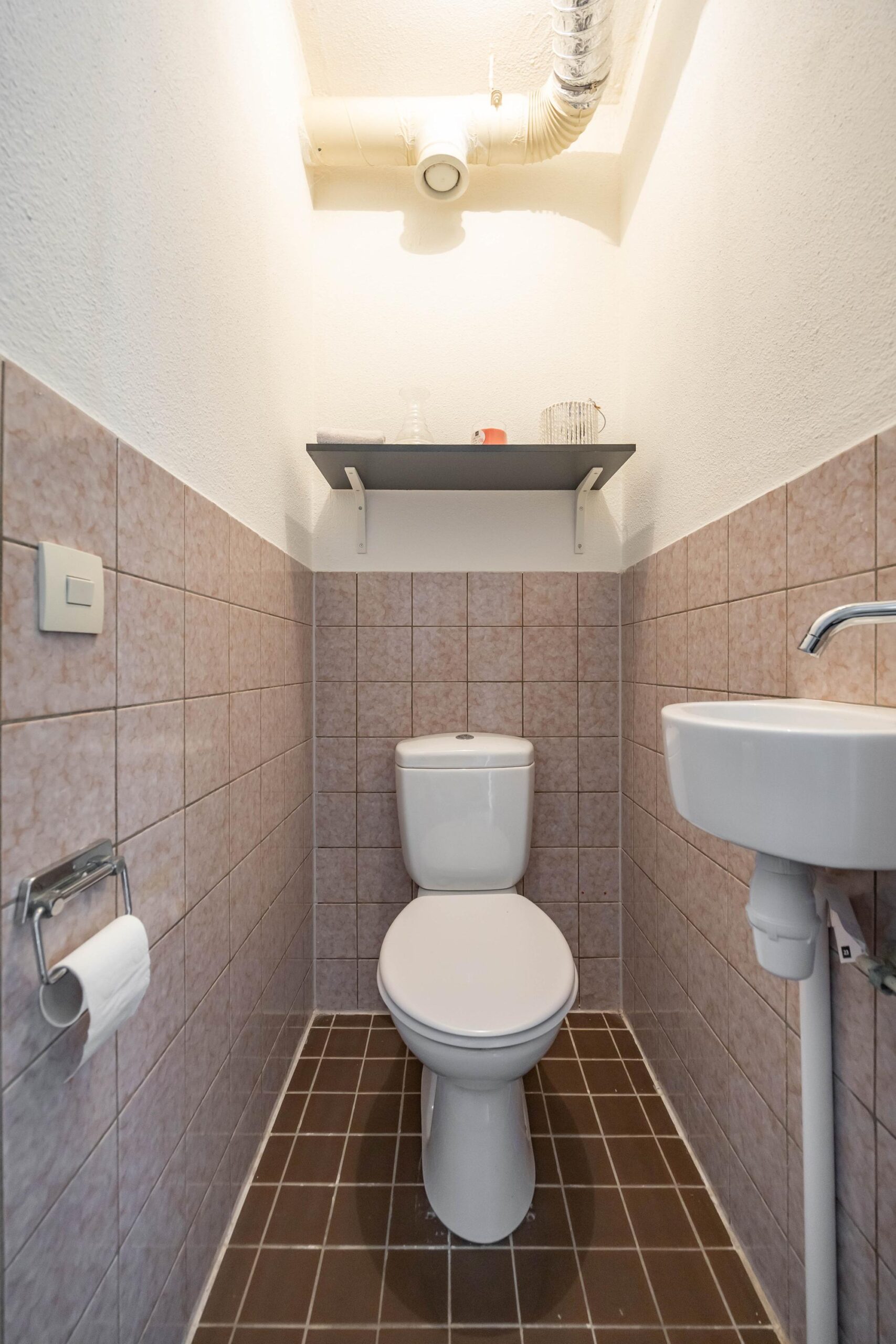 De badkamer is eveneens op deze verdieping gesitueerd en beschikt over een ligbad met douche, wastafel en een tweede toilet. De badkamer is functioneel, maar dient wellicht naar eigen smaak gemoderniseerd te worden. Daarnaast is er op deze verdieping een handige bergkast, perfect voor het opbergen van de stofzuiger en andere spullen.