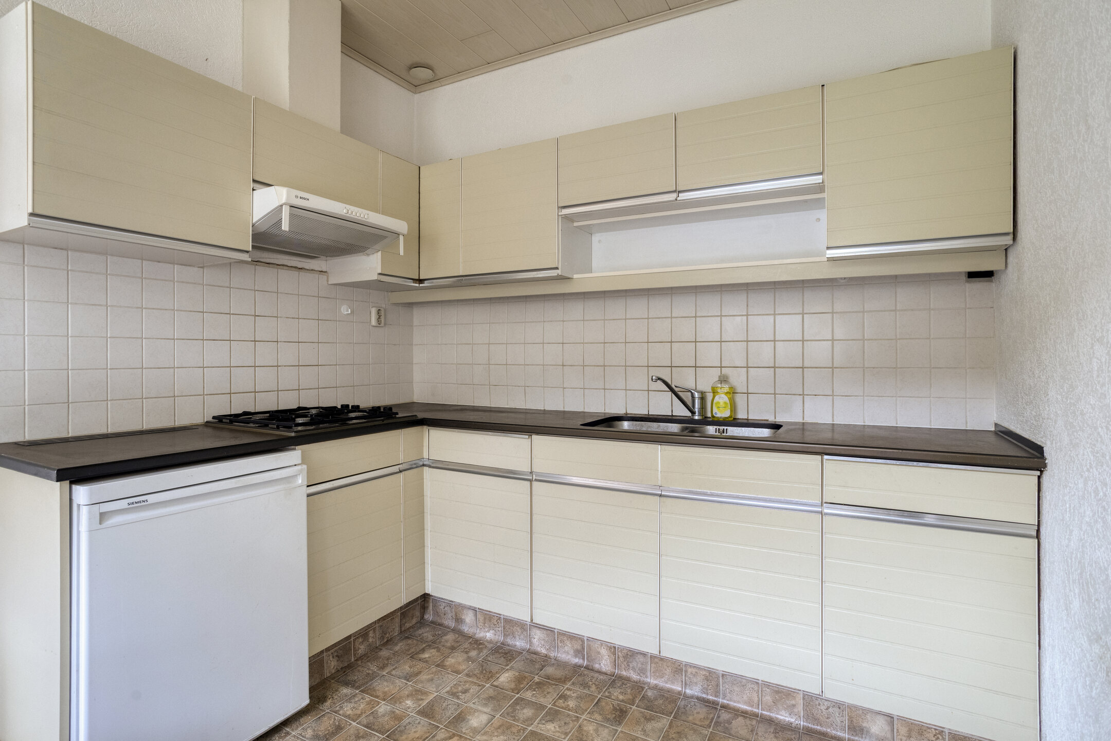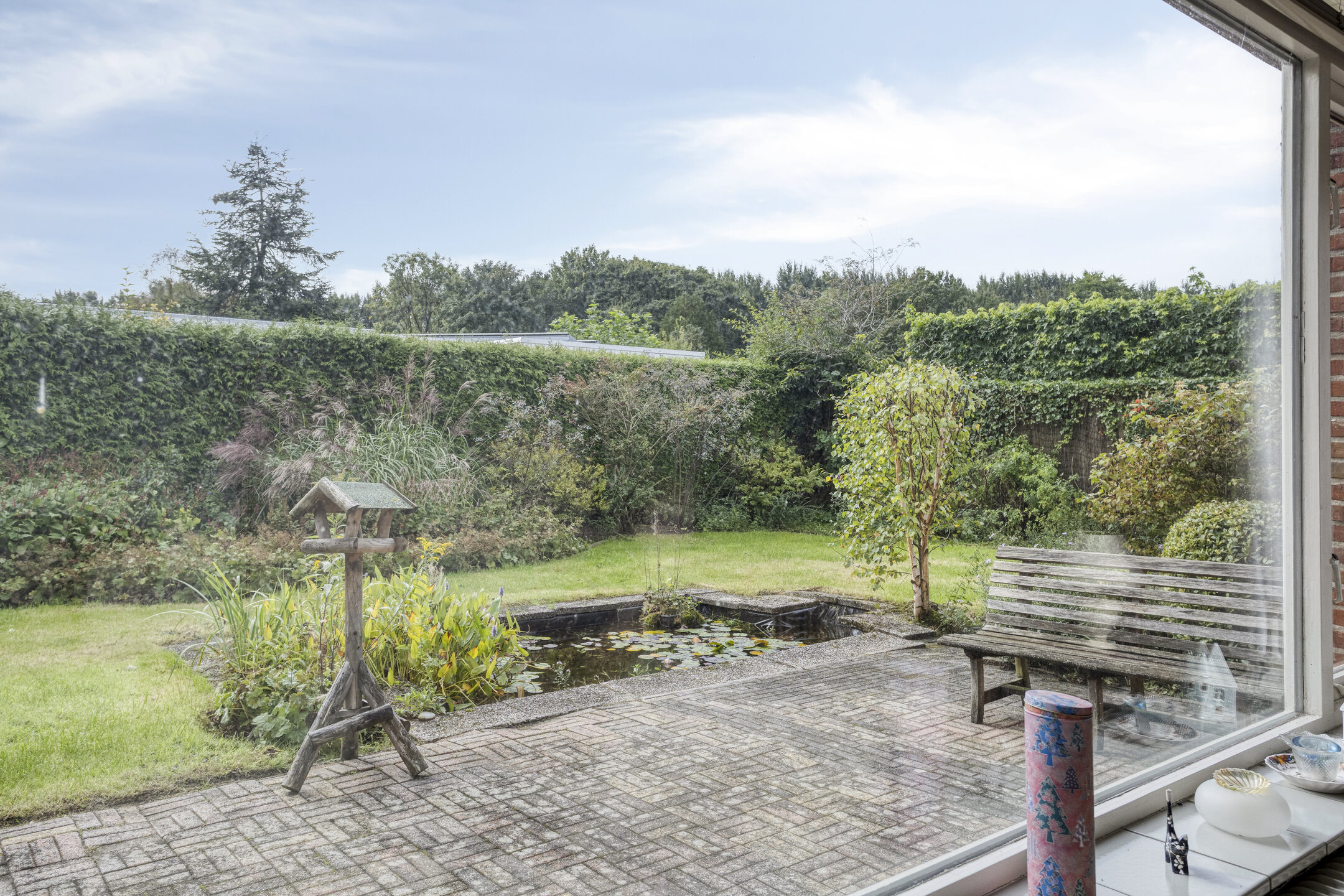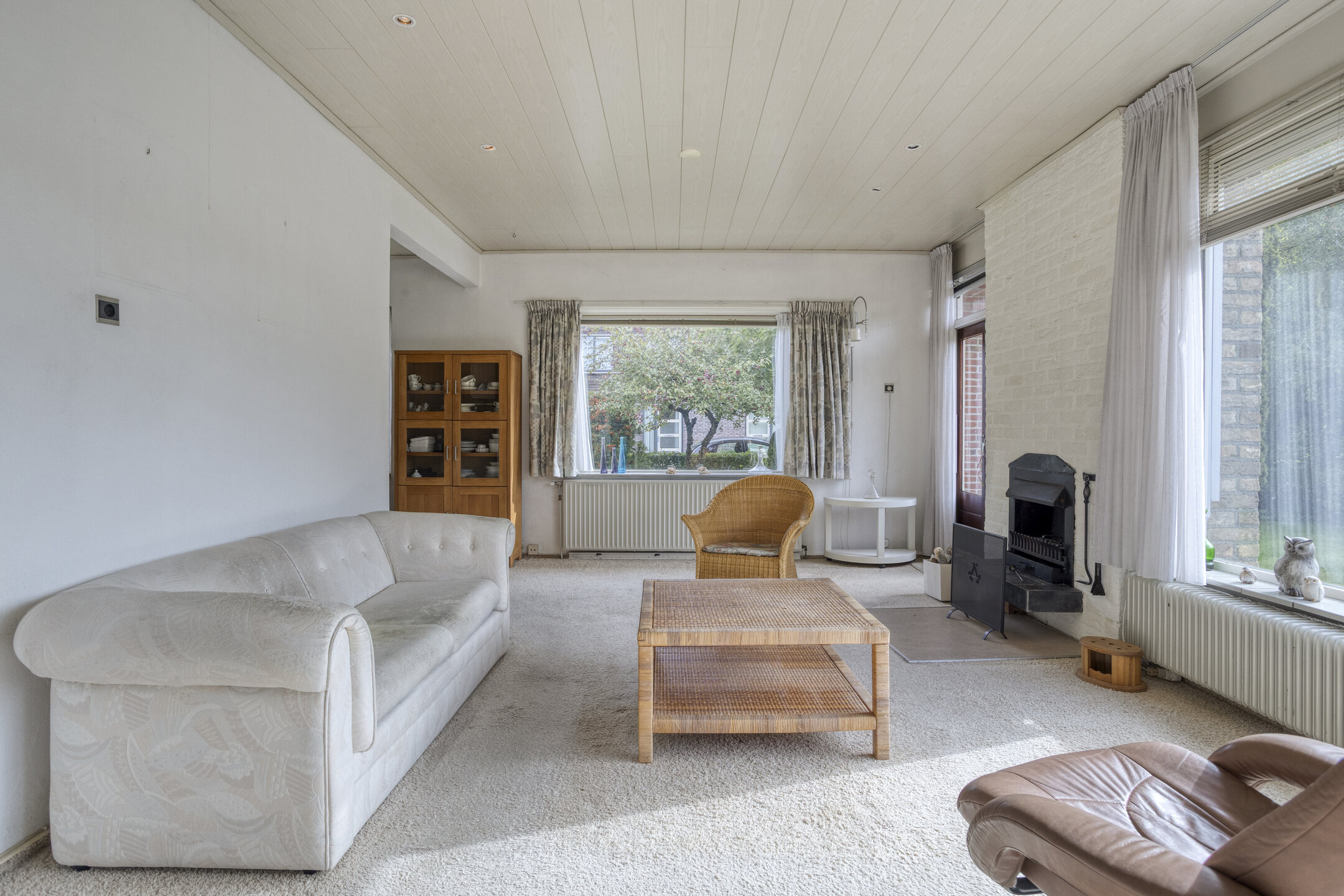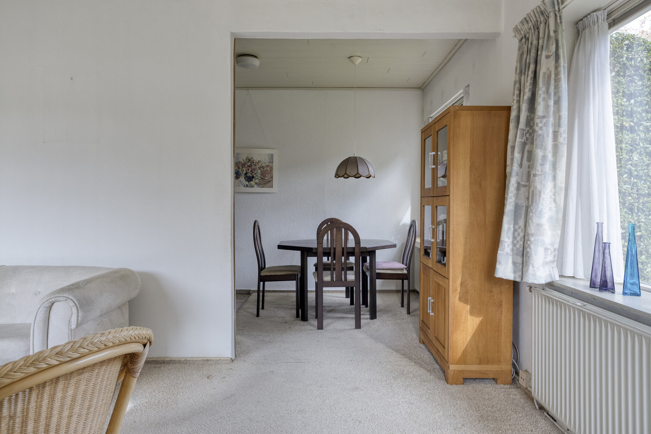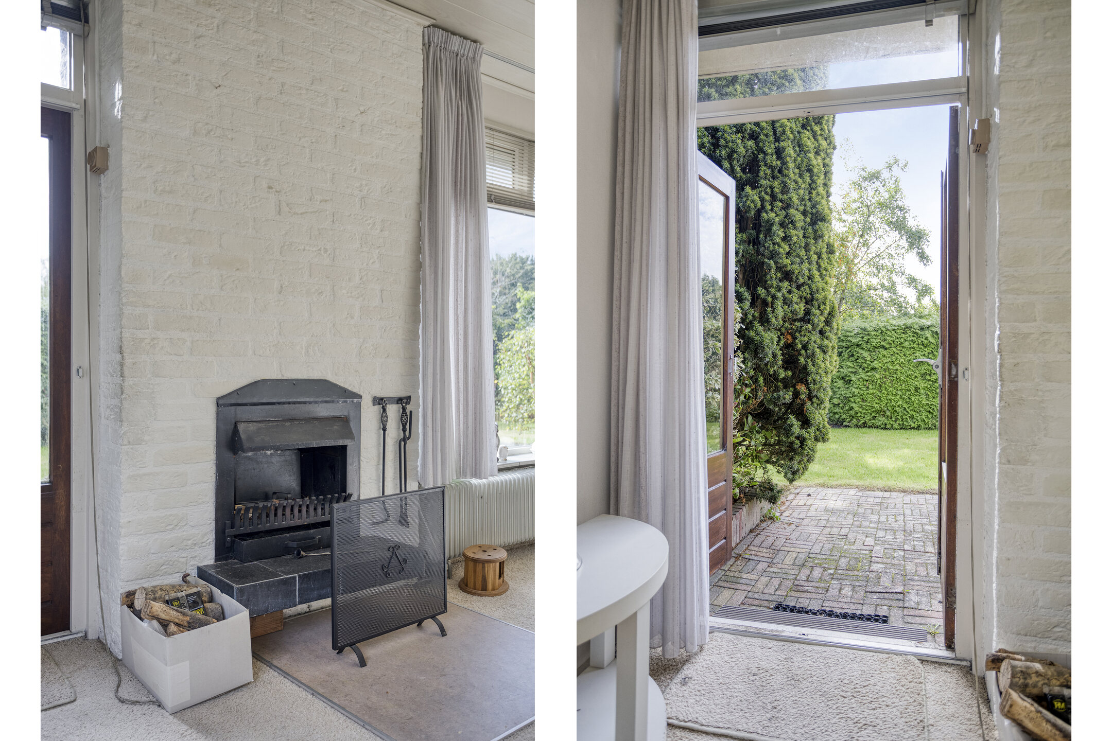 Aan het einde van de hal bereikt u de lichte en royale woonkamer met half-open keuken. Door de vele grote raampartijen is er een mooie verbinding met de groene achtertuin, waardoor u vanaf de bank kunt genieten van een prachtig uitzicht en veel privacy. De keuken is in een L-opstelling geplaatst en biedt daarnaast ruimte voor een eettafel.