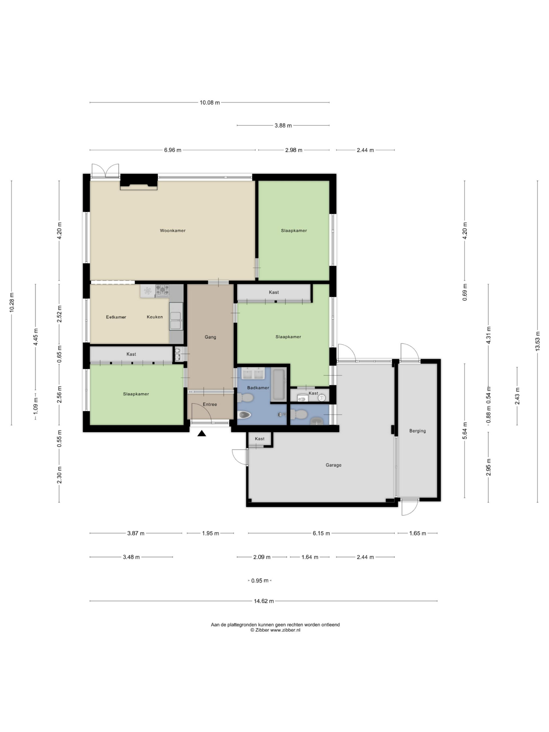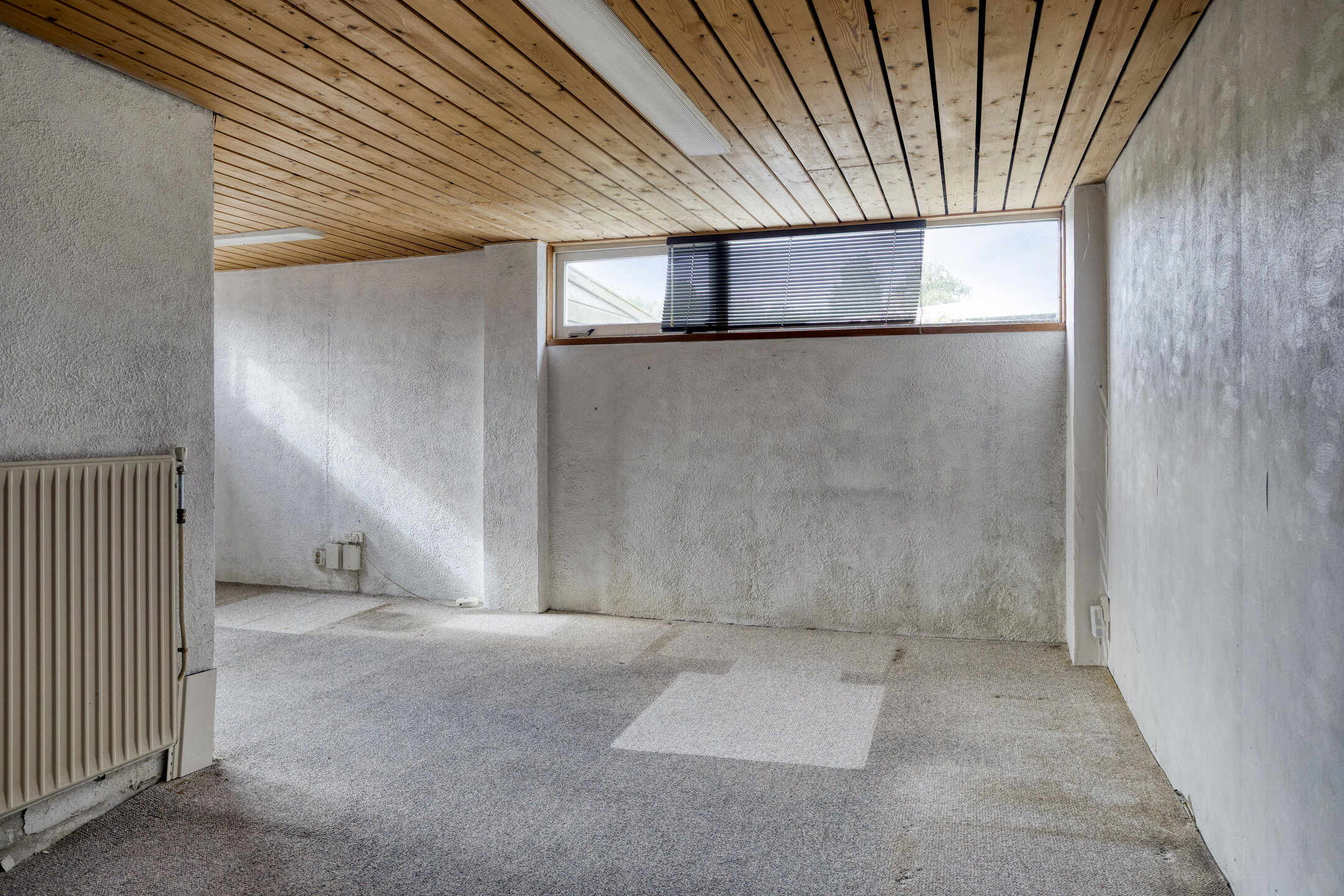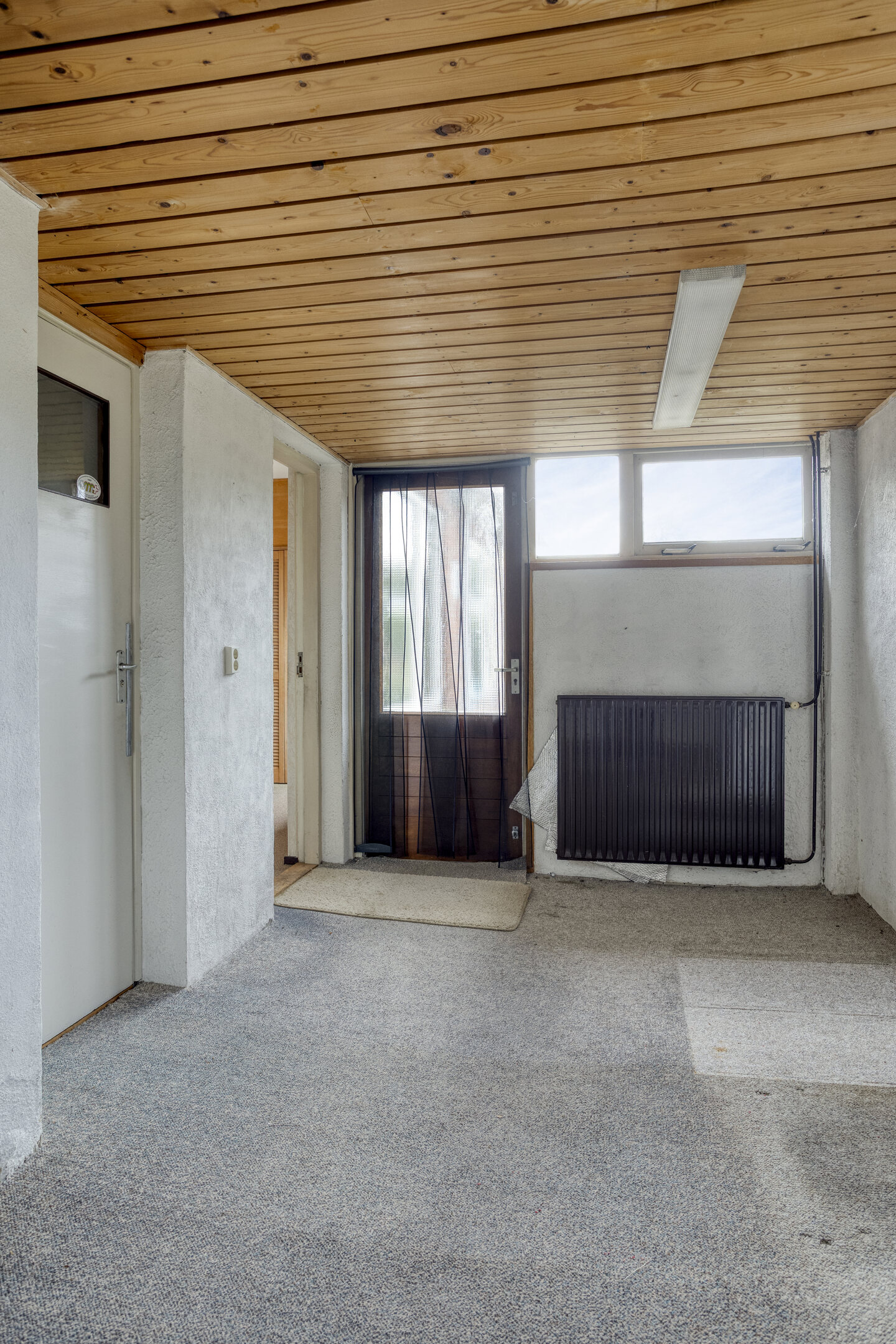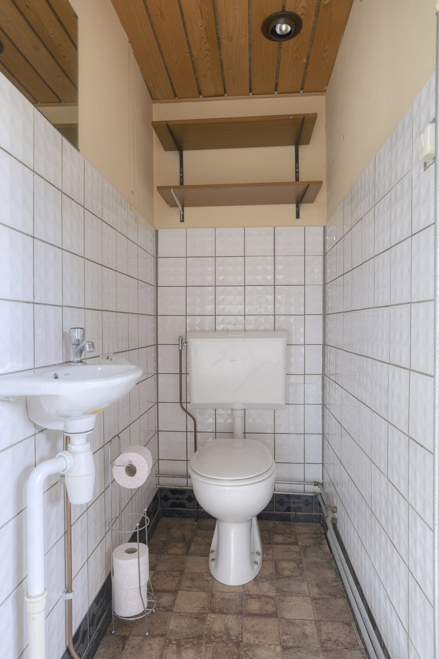 De tweede slaapkamer is eveneens vanuit de hal bereikbaar en heeft een vaste kastenwand. Deze kamer is circa 14 m² groot en herbergt tevens de CV-ketel. Aan deze slaapkamer grenst de garage, die beschikt over een separaat toilet.