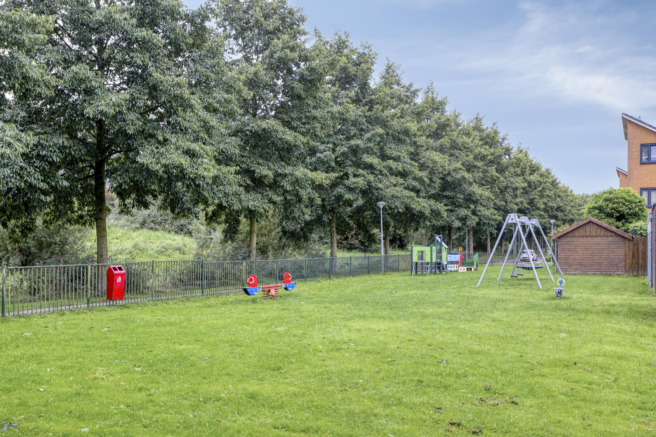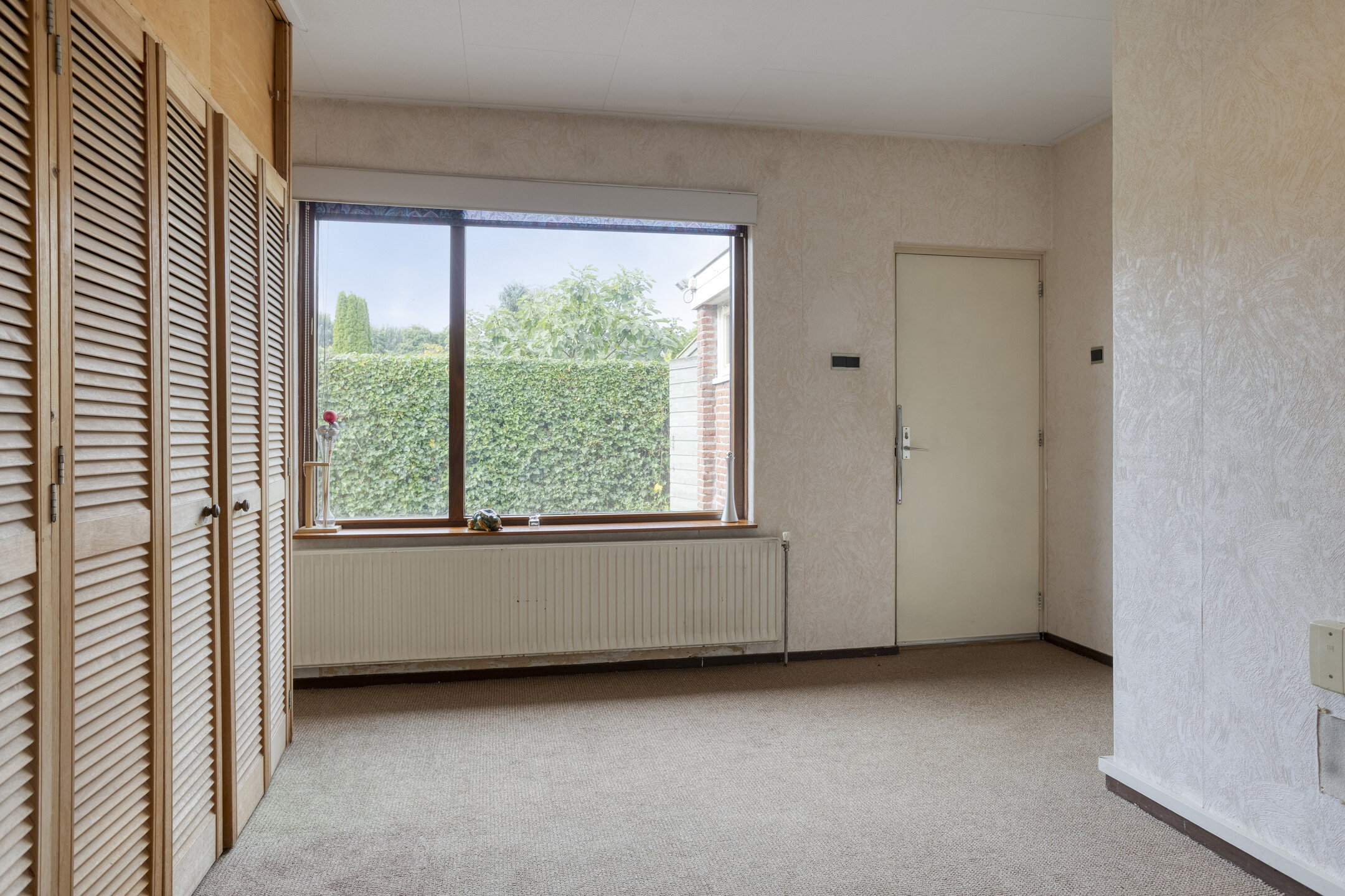 De derde slaapkamer, circa 12 m², is gelegen naast de woonkamer en kijkt uit op de tuin. Ook dit is een mooie, rustige slaapkamer. Indien gewenst, zou deze slaapkamer bij de woonkamer kunnen worden betrokken om een nog ruimere leefruimte te creëren.