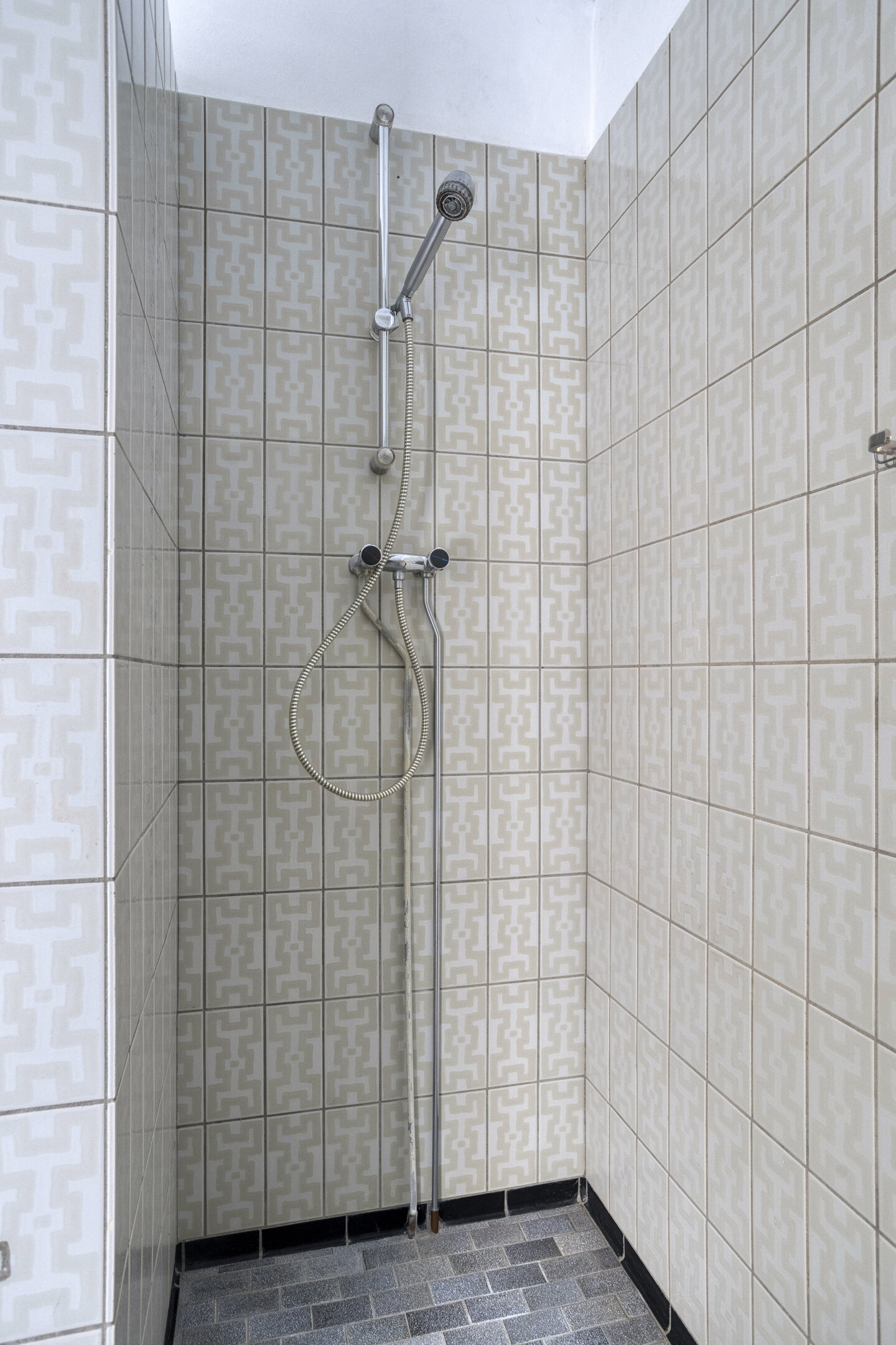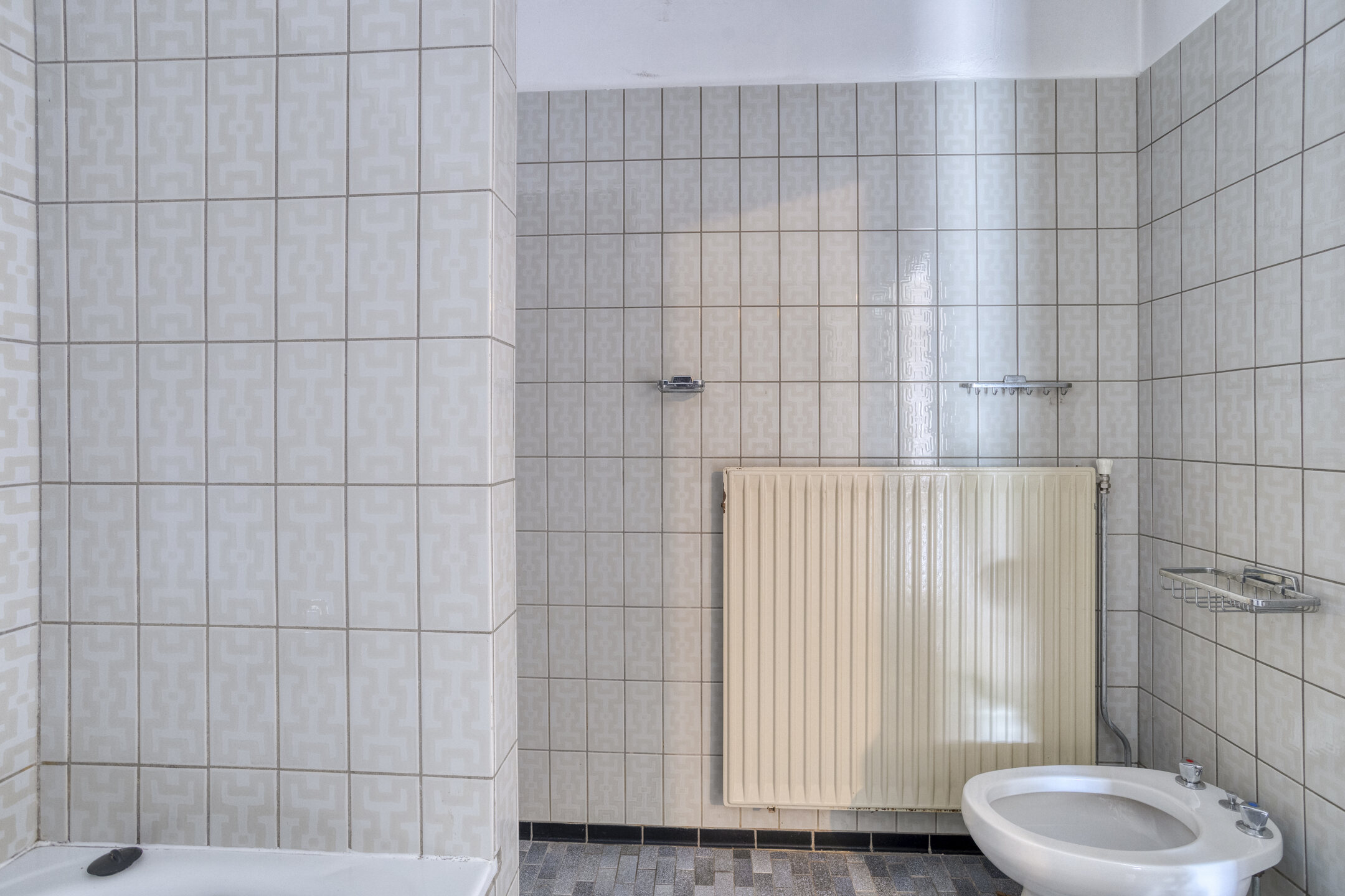 Bij het betreden van de woning komt u in de hal, die middels een extra tussendeur is afgesloten. Achter deze deur bevindt zich de hoofdhal, die toegang biedt tot de slaapkamer aan de voorzijde van de woning. Deze slaapkamer is circa 13 m² groot en voorzien van een vaste kastenwand. Tegenover deze kamer vindt u de badkamer, die is uitgerust met een ligbad, wastafelmeubel, toilet, bidet en een inloopdouche.