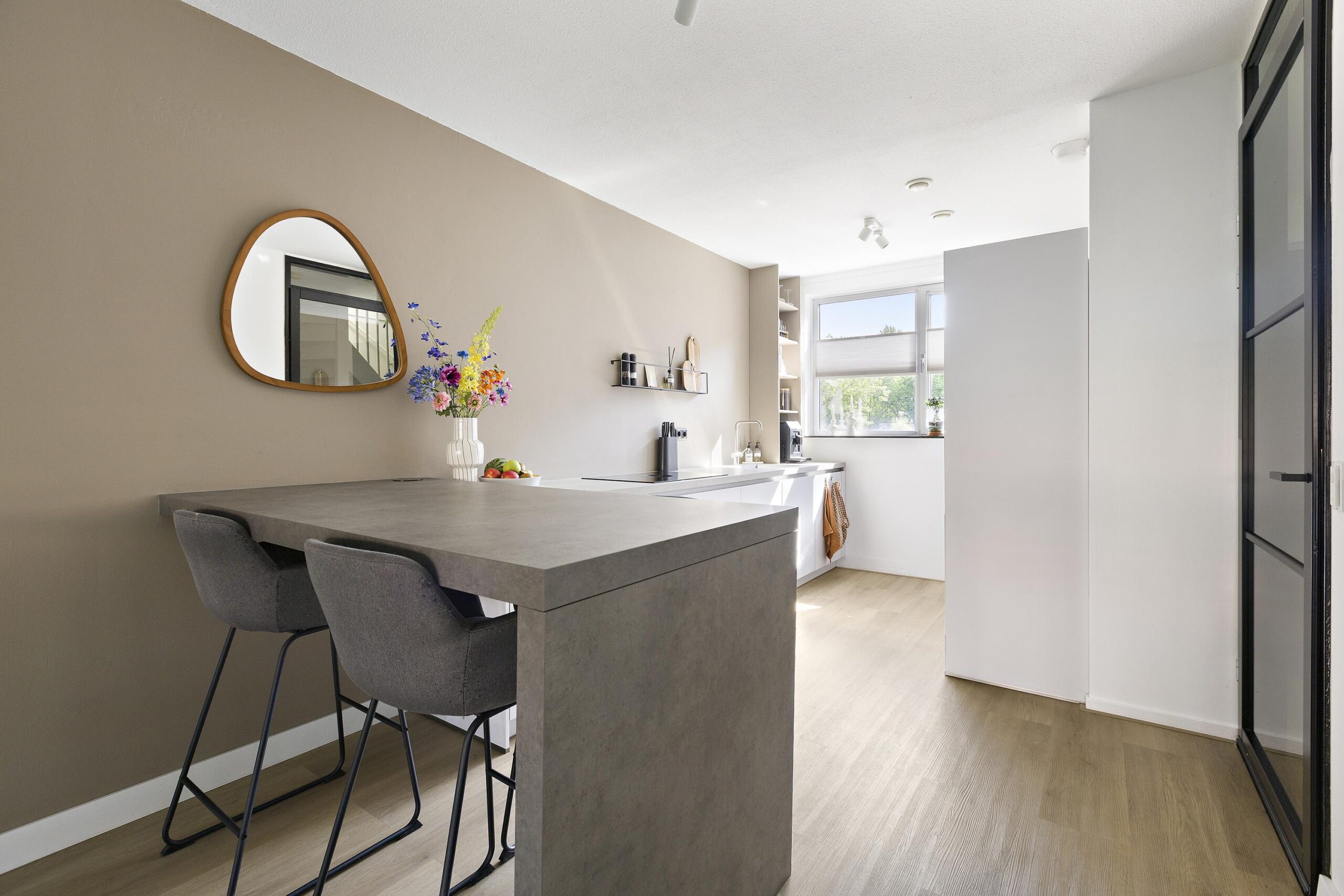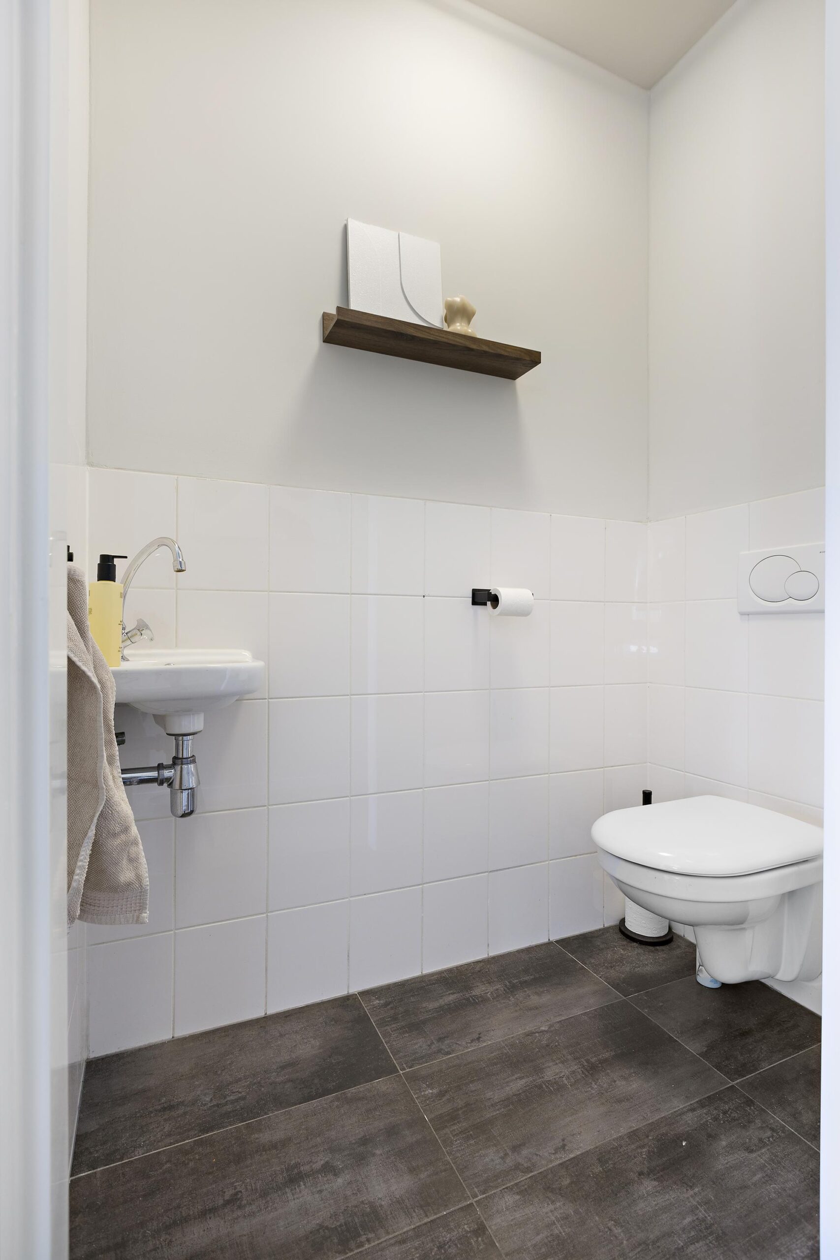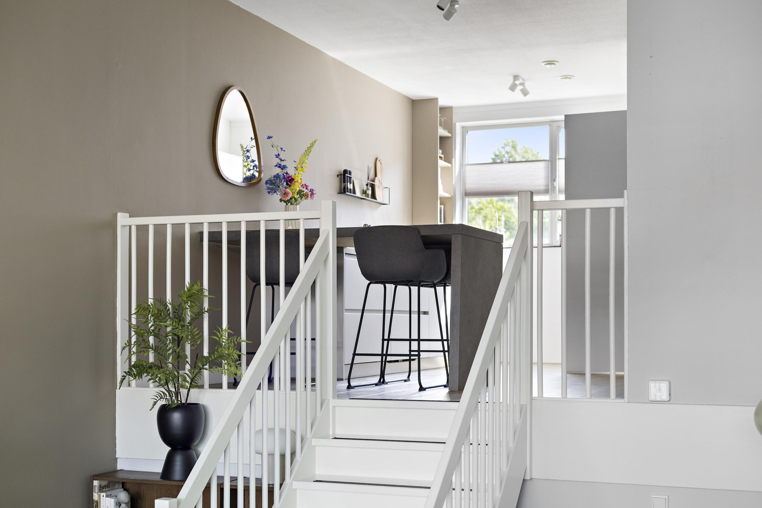 Bij binnenkomst in de ruime entree vind je de meterkast, een toiletruimte en de trap naar zowel de verdiepingen als het souterrain. Vanuit de hal loop je de moderne keuken in, die is voorzien van diverse inbouwapparatuur zoals een vaatwasser, oven en een koel-vriescombinatie. Naast de keuken is er voldoende ruimte voor een gezellig barretje of een extra eethoek, ideaal voor ontbijtjes, diners of een borrel met vrienden en familie.