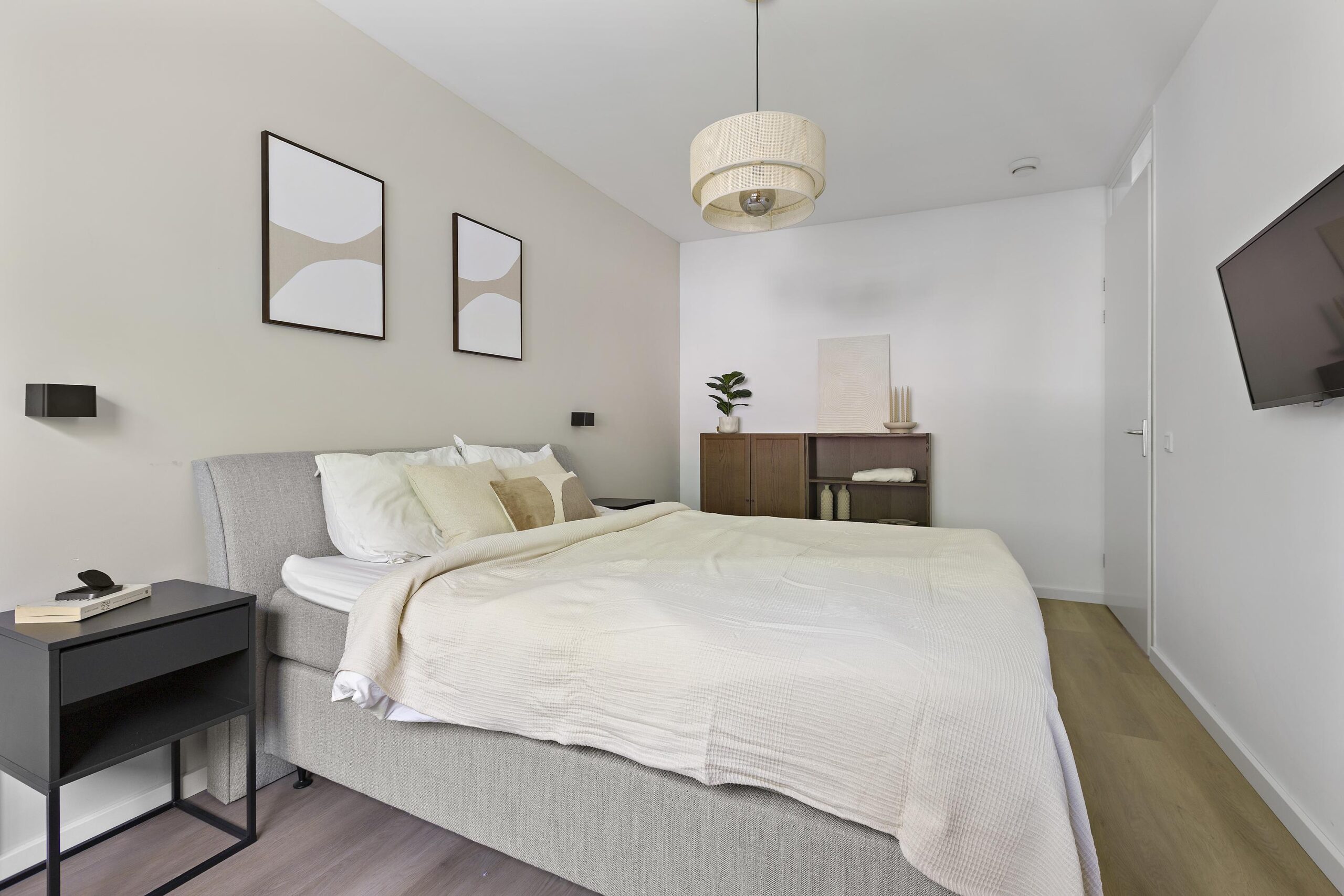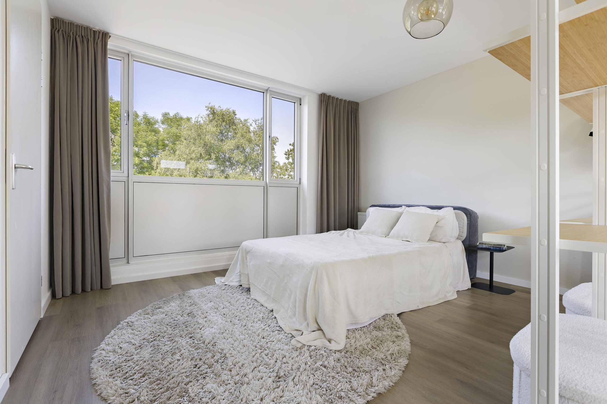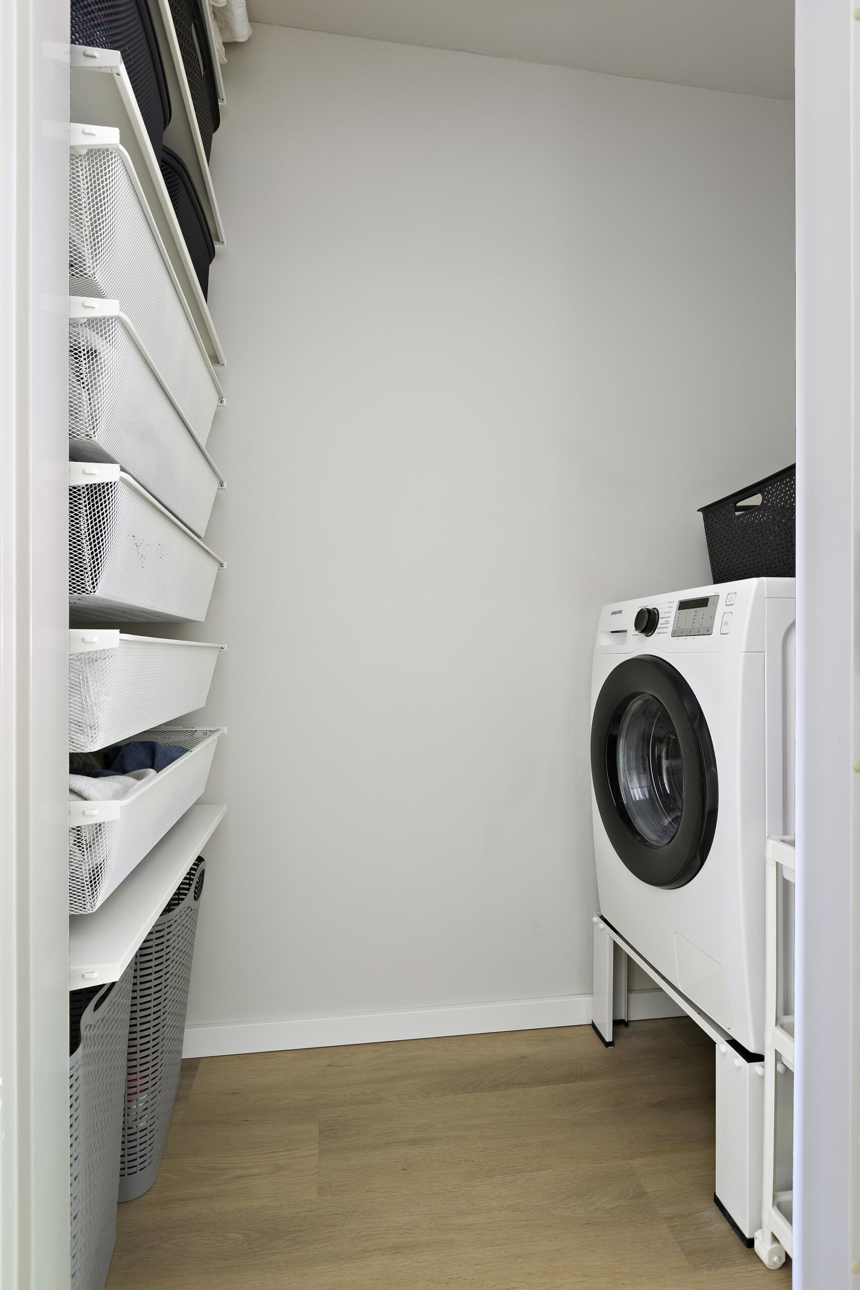 Op de tweede verdieping bevindt zich de ruime vierde slaapkamer. Deze kamer is voorzien van een modern modulair open kastsysteem, dat flexibiliteit biedt voor het opbergen van kleding en spullen, maar ook gemakkelijk kan worden ingericht als werkplek of hobbyruimte. Dankzij het formaat en de indeling is deze kamer veelzijdig te gebruiken en biedt het volop mogelijkheden om aan te passen aan je eigen wensen. Bovendien bestaat er de mogelijkheid om een royaal dakterras van circa 24 m² te creëren.