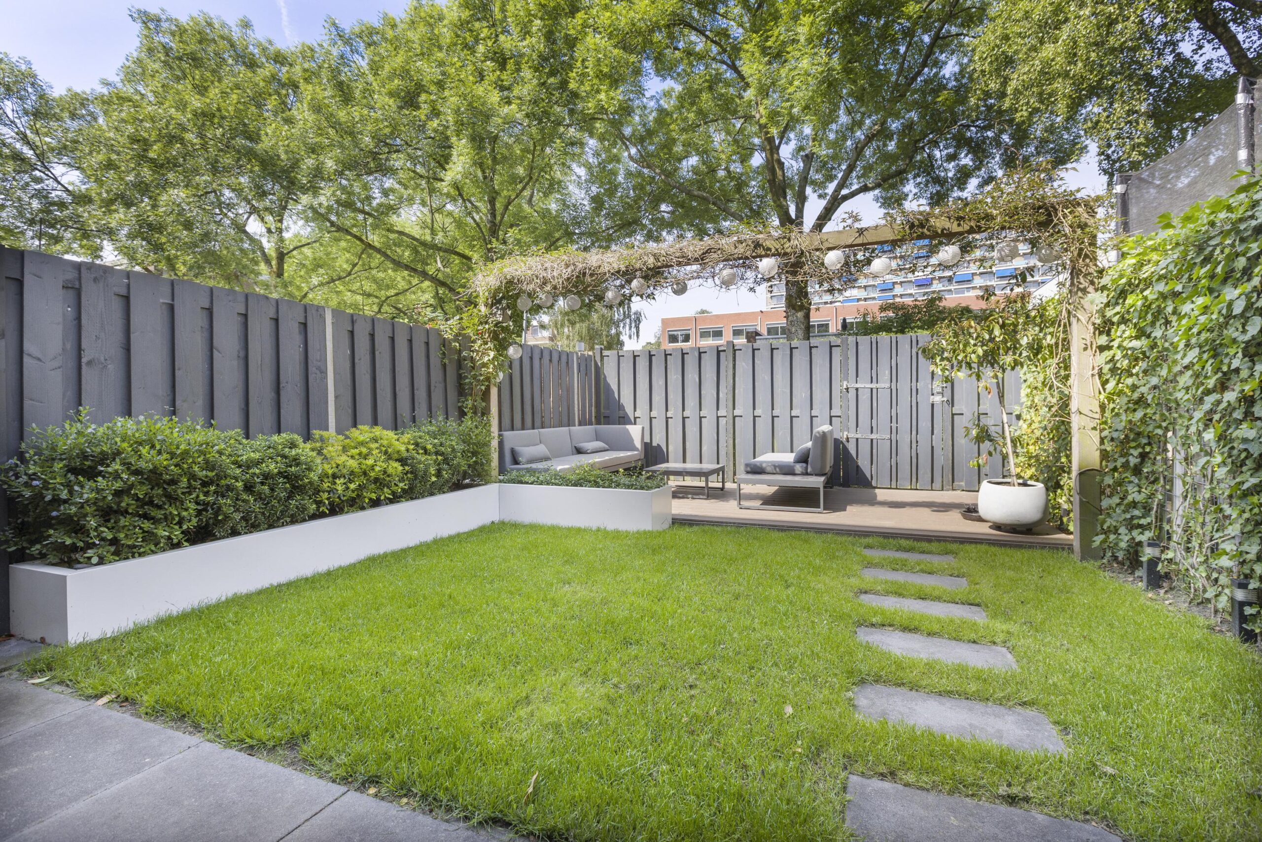 De zonnige tuin van circa 50 m² ligt op het zuidwesten en biedt daarmee een perfecte plek om van de middag- en avondzon te genieten. De tuin is sfeervol aangelegd met een vlonderterras dat uitnodigt tot een gezellige zithoek in de zon, terwijl een tweede terras direct aan het huis iets meer beschutting en schaduw biedt. Het gazon en de vaste plantenbak brengen bovendien een fijne, groene uitstraling en maken de tuin helemaal compleet.